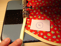 Chegados ao ponto 4, coze-se mais 40 cm de viés "sózinho" para completar então a outra parte que vai atar atrás.